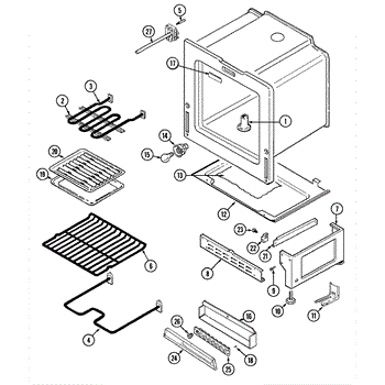 This OEM Replacement Part is a bake element designed for Whirlpool electric ovens. It measures approximately 19 1/4 inches wide and 15 1/2 inches deep. The element extends about 3 inches past the bracket to the terminals. The element, positioned at the bottom of the oven cavity, supplies heat for baking. It features male spade connectors with push-on wire terminals. If your oven experiences uneven heating, lack of heat, or minimal heat during baking, replacing this part may be necessary. Ensure the range is unplugged or the house circuit breaker for the range is shut off before installation. The element provides 2100 watts on 208 volts and 2800 watts on 240 volts. Removal involves unscrewing Phillips screws above the element brackets and detaching the wire harness without losing wires. Inspecting the wire terminals for any signs of arcing or burning during removal is recommended.