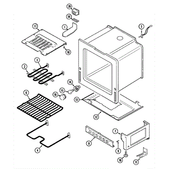 This OEM Replacement Part is a bake element designed for Whirlpool electric ovens. It measures approximately 19 1/4 inches wide and 15 1/2 inches deep. The element extends about 3 inches past the bracket to the terminals. The element, positioned at the bottom of the oven cavity, supplies heat for baking. It features male spade connectors with push-on wire terminals. If your oven experiences uneven heating, lack of heat, or minimal heat during baking, replacing this part may be necessary. Ensure the range is unplugged or the house circuit breaker for the range is shut off before installation. The element provides 2100 watts on 208 volts and 2800 watts on 240 volts. Removal involves unscrewing Phillips screws above the element brackets and detaching the wire harness without losing wires. Inspecting the wire terminals for any signs of arcing or burning during removal is recommended.