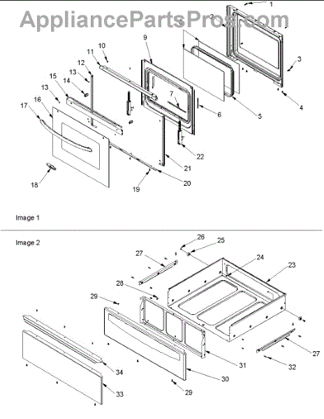 Mounting screw secures panels, brackets, and trim to the appliance frame. Replace if screw is stripped, missing, or damaged to restore secure fastening.