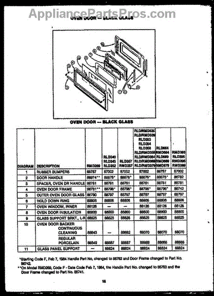 Parts for Amana RLD335: 04 - Oven Door - Black Glass Parts