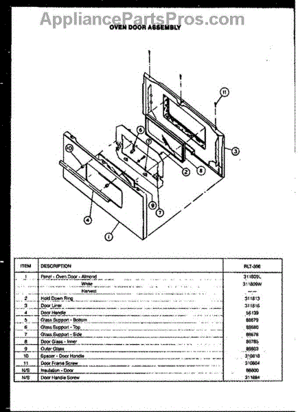 Parts for Amana RLT-356: 04 - Oven Door Assy Parts