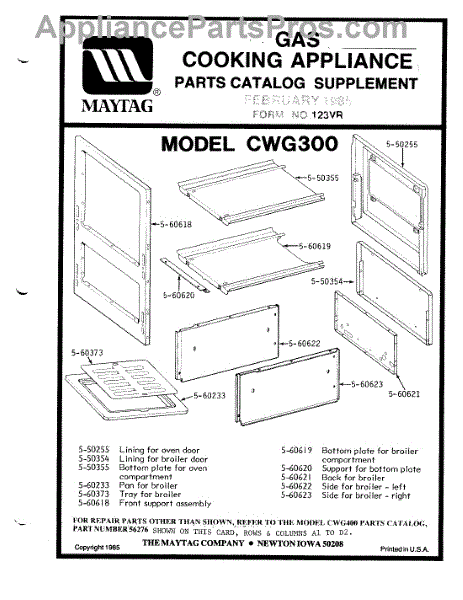 Parts for Maytag CWG300: 04 - Oven Parts