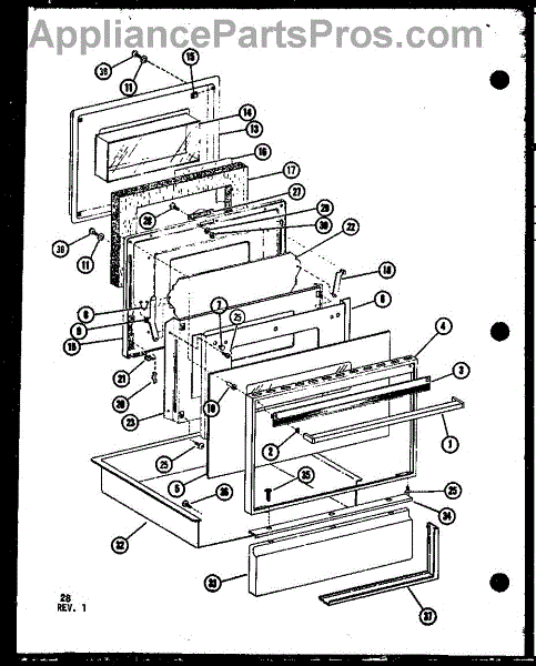 This factory screw secures appliance components to their mounting points. Replace missing, worn, or stripped hardware to restore a tight fit, proper alignment, and quieter operation across the affected assembly.