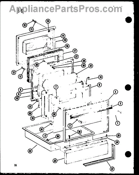 This factory screw secures appliance components to their mounting points. Replace missing, worn, or stripped hardware to restore a tight fit, proper alignment, and quieter operation across the affected assembly.
