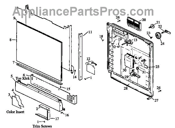 This factory screw secures appliance components to their mounting points. Replace missing, worn, or stripped hardware to restore a tight fit, proper alignment, and quieter operation across the affected assembly.