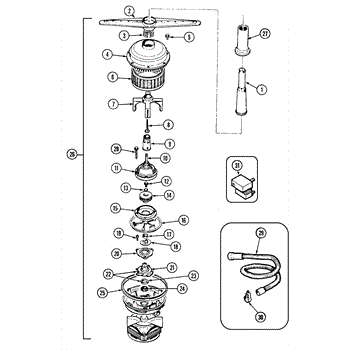 • Spins inside the wash pump to move water through spray arms; damaged fins reduce spray force and cleaning.