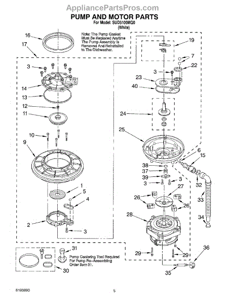 Parts for Whirlpool SUD5100MQ0: 04 - Pump And Motor Parts