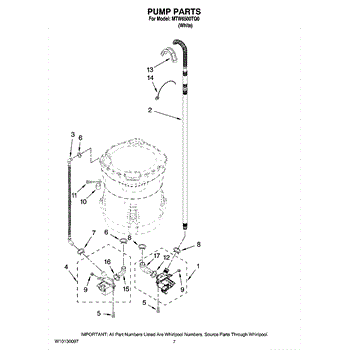 The Tub to Drain Pump Hose is an OEM replacement part for Whirlpool washers. This hose is responsible for transporting water from the wash tub to the drain pump during the drain cycle. Causes relate to mineral deposits stiffening the interior over multiple years, natural cracking from repeated flexion, or punctures from foreign objects inside tub impacting the material. Symptoms of a defective hose involve: