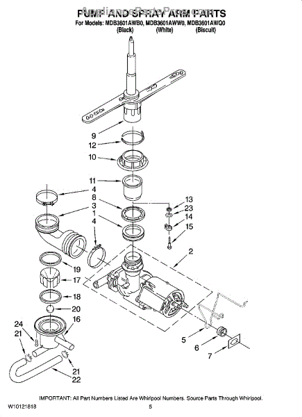 Parts for Maytag MDB3601AWQ0: 04 - Pump And Spray Arm Parts