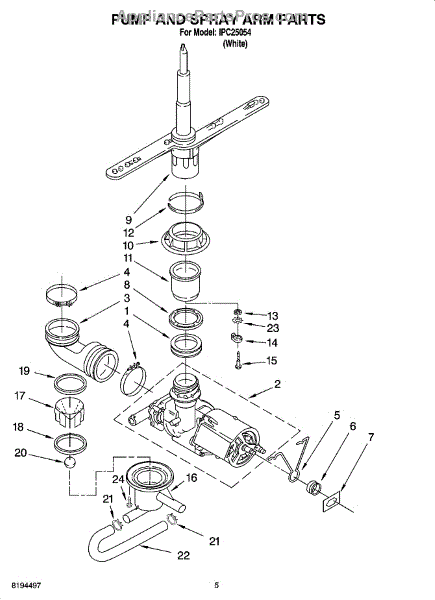 Parts for Whirlpool IPC25054: 04 - Pump And Spray Arm Parts