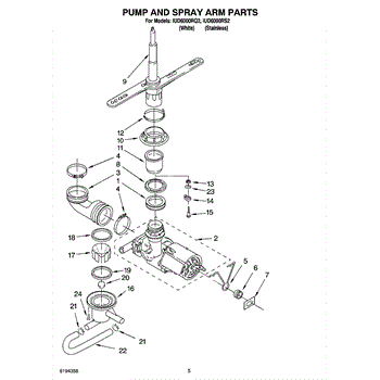 Parts for Whirlpool IUD6000RQ2: 04 - Pump And Spray Arm Parts