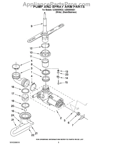 Parts for Whirlpool IUD6000WQ1: 04 - Pump And Spray Arm Parts