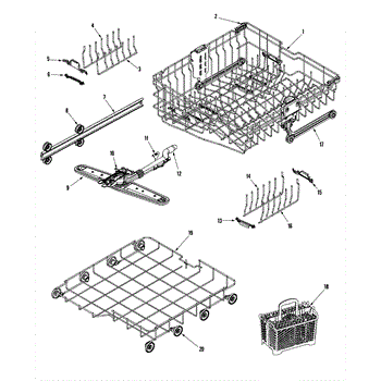 Dishwasher silverware basket includes both halves. Color: gray. Measures about 8 inches wide by 9-1/2 inches high by 12 inches deep.