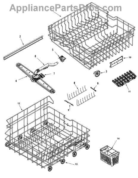 Note: New rack no longer includes removable tines or cup shelf. This part is a lower dishrack. The lower dishrack is the lower shelf of a dishwasher that holds plates, bowls, and utensils. To remove the old dishrack, simply pull it out and lift the wheels up from its track. Set it off the side, and lift the new dishrack. Slide it into its track and make sure it is locked in. If it is gliding in and out in a smooth way, it has been installed properly.This genuine replacement OEM part is sold individually and is compatible with Whirlpool brands include Whirlpool, Maytag, KitchenAid, Jenn-Air, Amana, Magic Chef, Admiral, Norge, Roper, and Sears/Kenmore brand appliances.