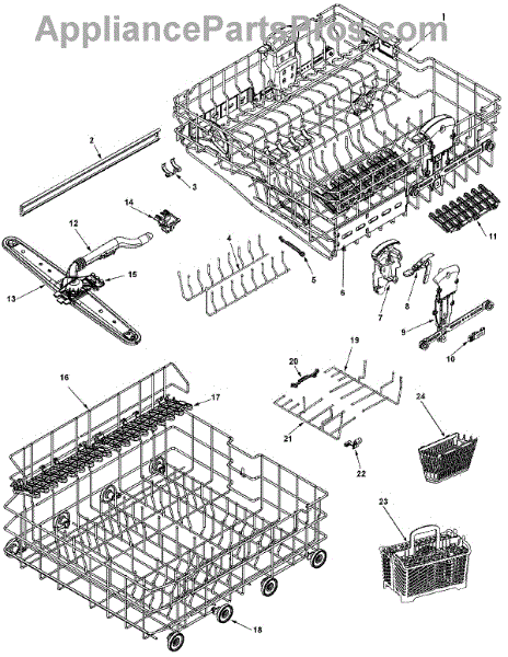 Note: New rack no longer includes removable tines or cup shelf. This part is a lower dishrack. The lower dishrack is the lower shelf of a dishwasher that holds plates, bowls, and utensils. To remove the old dishrack, simply pull it out and lift the wheels up from its track. Set it off the side, and lift the new dishrack. Slide it into its track and make sure it is locked in. If it is gliding in and out in a smooth way, it has been installed properly.This genuine replacement OEM part is sold individually and is compatible with Whirlpool brands include Whirlpool, Maytag, KitchenAid, Jenn-Air, Amana, Magic Chef, Admiral, Norge, Roper, and Sears/Kenmore brand appliances.