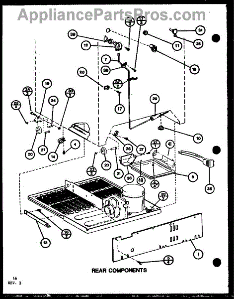 This factory screw secures appliance components to their mounting points. Replace missing, worn, or stripped hardware to restore a tight fit, proper alignment, and quieter operation across the affected assembly.