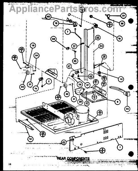 This factory screw secures appliance components to their mounting points. Replace missing, worn, or stripped hardware to restore a tight fit, proper alignment, and quieter operation across the affected assembly.