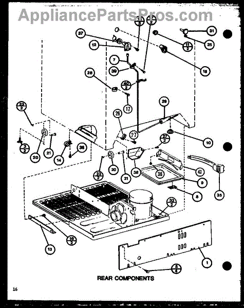 This factory screw secures appliance components to their mounting points. Replace missing, worn, or stripped hardware to restore a tight fit, proper alignment, and quieter operation across the affected assembly.
