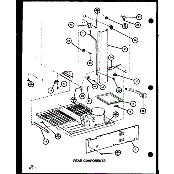 This factory screw secures appliance components to their mounting points. Replace missing, worn, or stripped hardware to restore a tight fit, proper alignment, and quieter operation across the affected assembly.