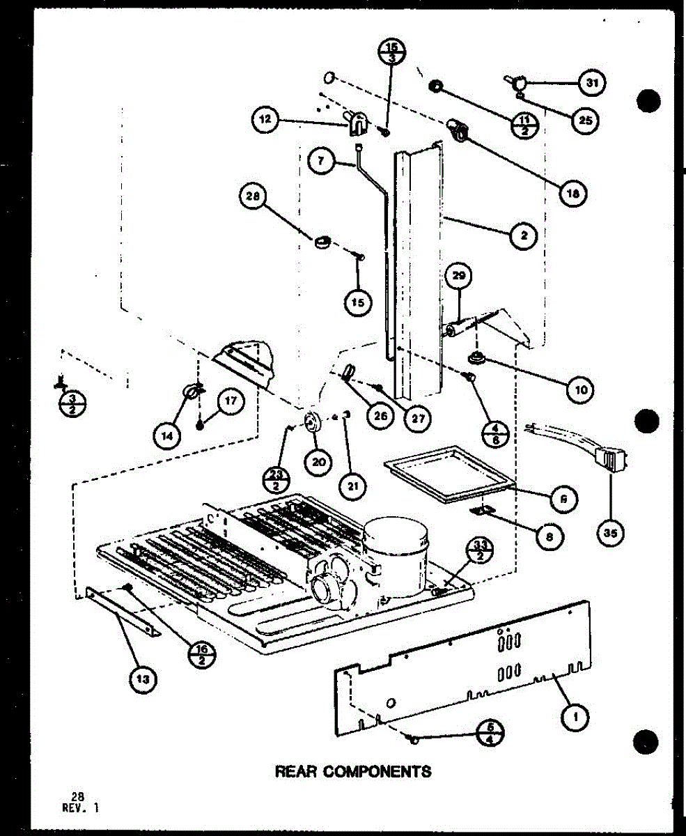 This factory screw secures appliance components to their mounting points. Replace missing, worn, or stripped hardware to restore a tight fit, proper alignment, and quieter operation across the affected assembly.