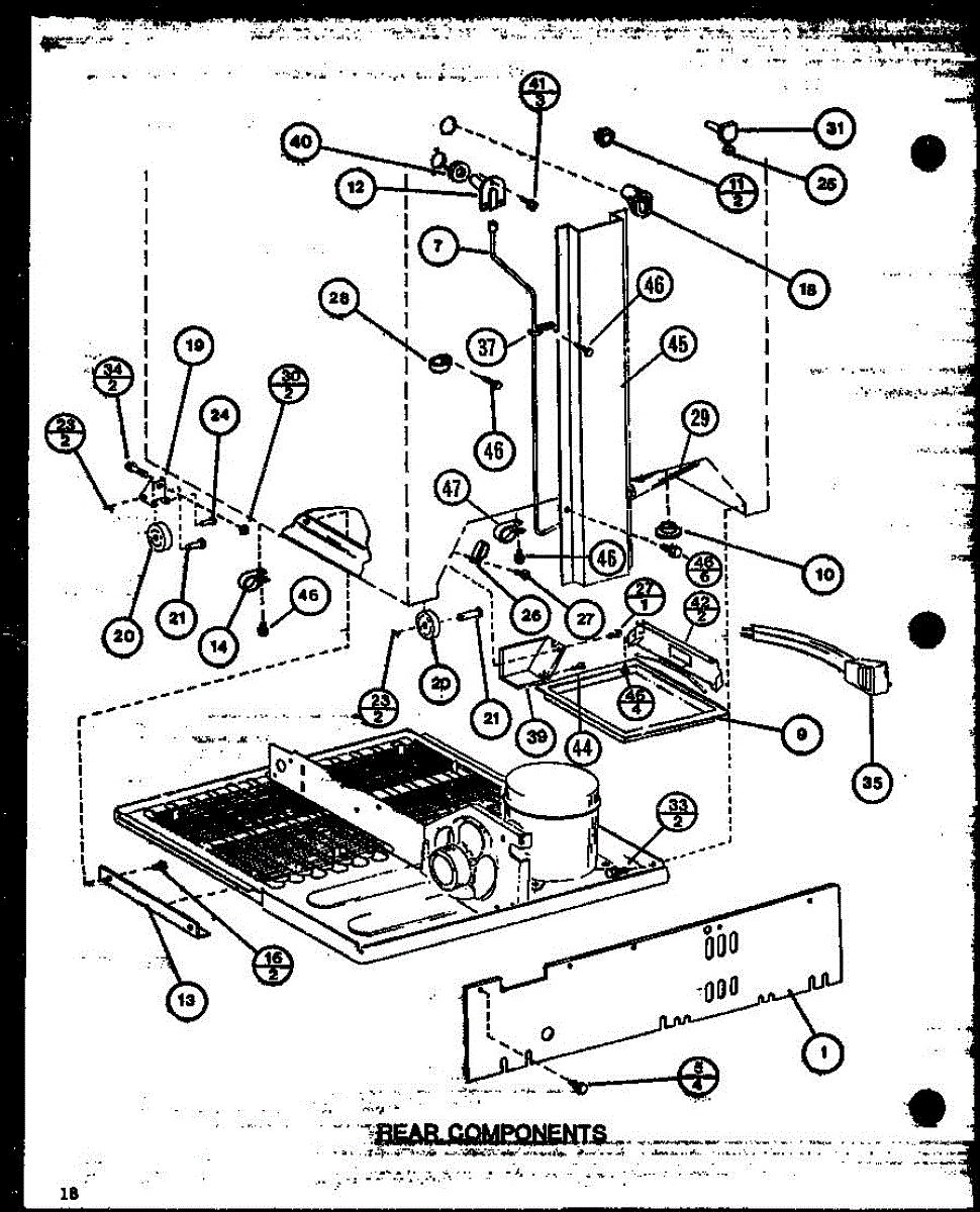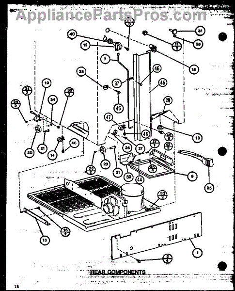 This factory screw secures appliance components to their mounting points. Replace missing, worn, or stripped hardware to restore a tight fit, proper alignment, and quieter operation across the affected assembly.