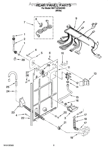 This anchored hose assembly routes water safely inside the appliance and secures in place to prevent movement and kinking for reliable flow. Use it when a worn or damaged hose causes leaks, poor draining, or noise. What it does