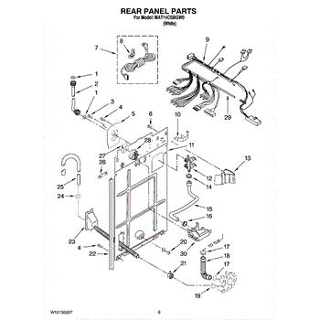 This anchored hose assembly routes water safely inside the appliance and secures in place to prevent movement and kinking for reliable flow. Use it when a worn or damaged hose causes leaks, poor draining, or noise. What it does