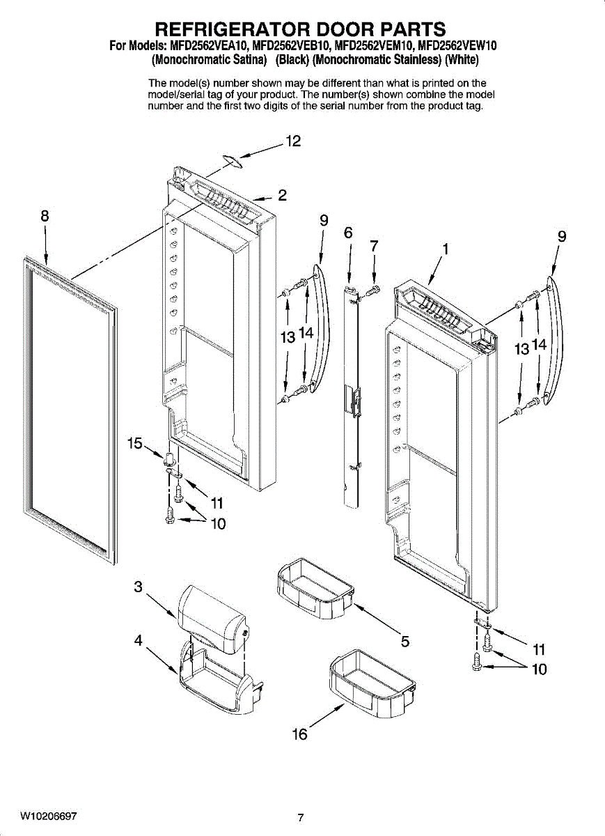 Color: White Note: For RH Door. For BLACK gasket, order W11368721.