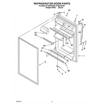 Refrigerator door assembly with gasket-white.