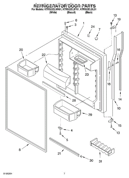 Parts for Kitchenaid KTRS22ELWH01: 04 - Refrigerator Door Parts
