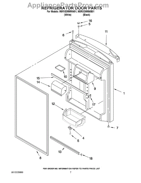 Parts for Whirlpool M0RXEMMWB01: 04 - Refrigerator Door Parts