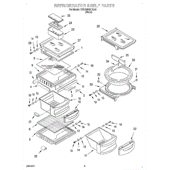 This egg carrier is a molded tray that holds and secures eggs inside the refrigerator so they stay organized and protected from rolling or breaking. It restores safe, tidy egg storage and fits the factory shelf location. What it does
