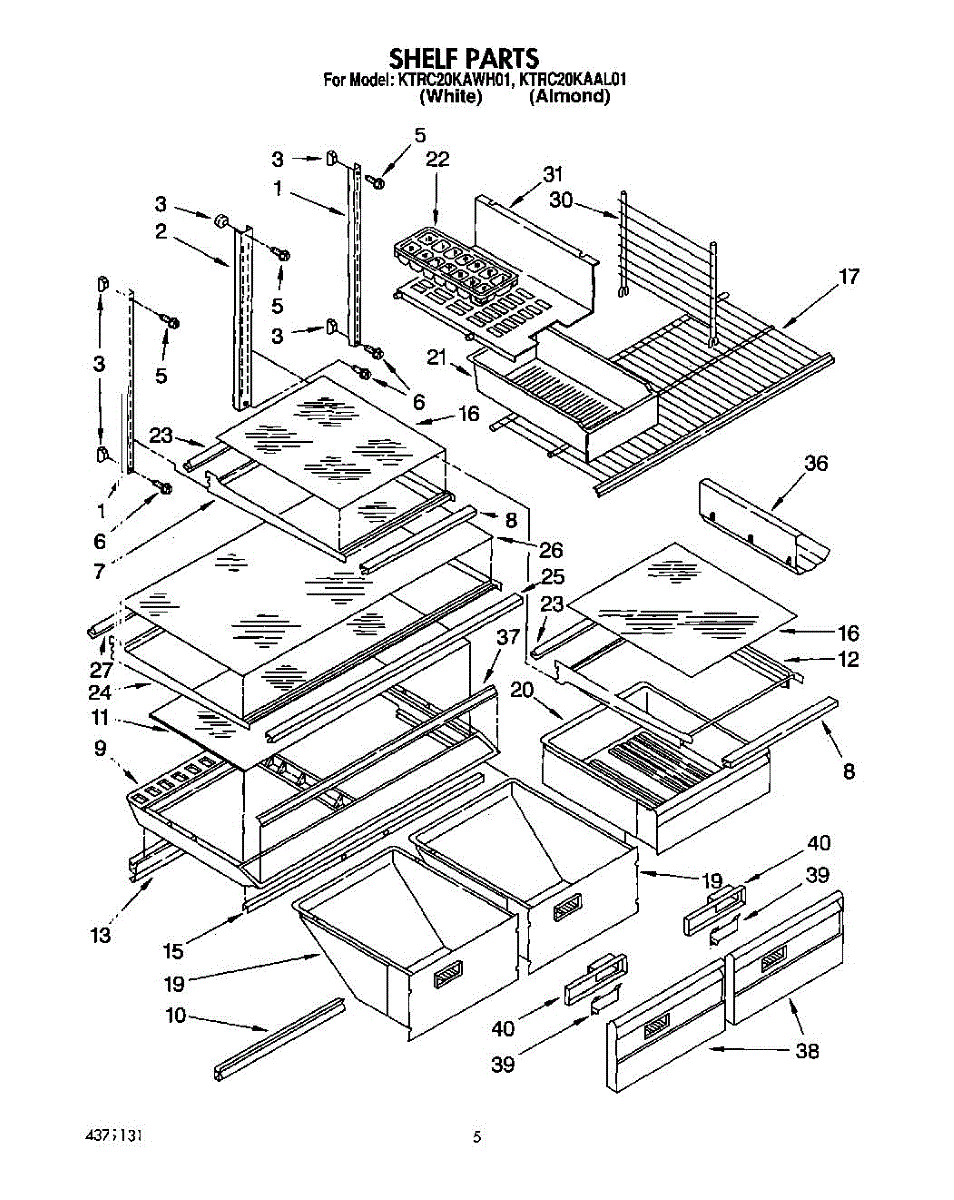 White plastic crisper cover frame that holds the glass insert above vegetable drawers. Replace if cracked, broken, or slides are damaged. 30"W x 20"D.
