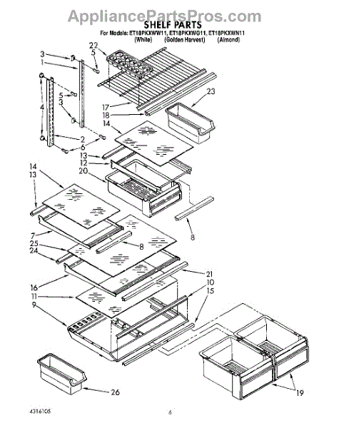 Parts for Whirlpool ET18PKXWG11: 04 - Shelf Parts