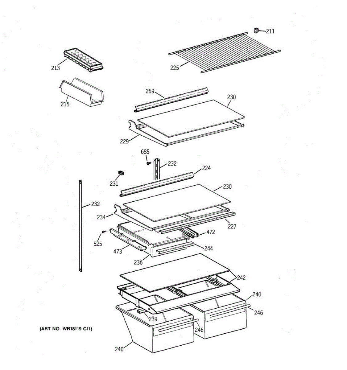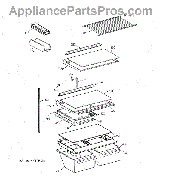Parts for Ge CTG18GABGRWW: 04 - Shelf Parts