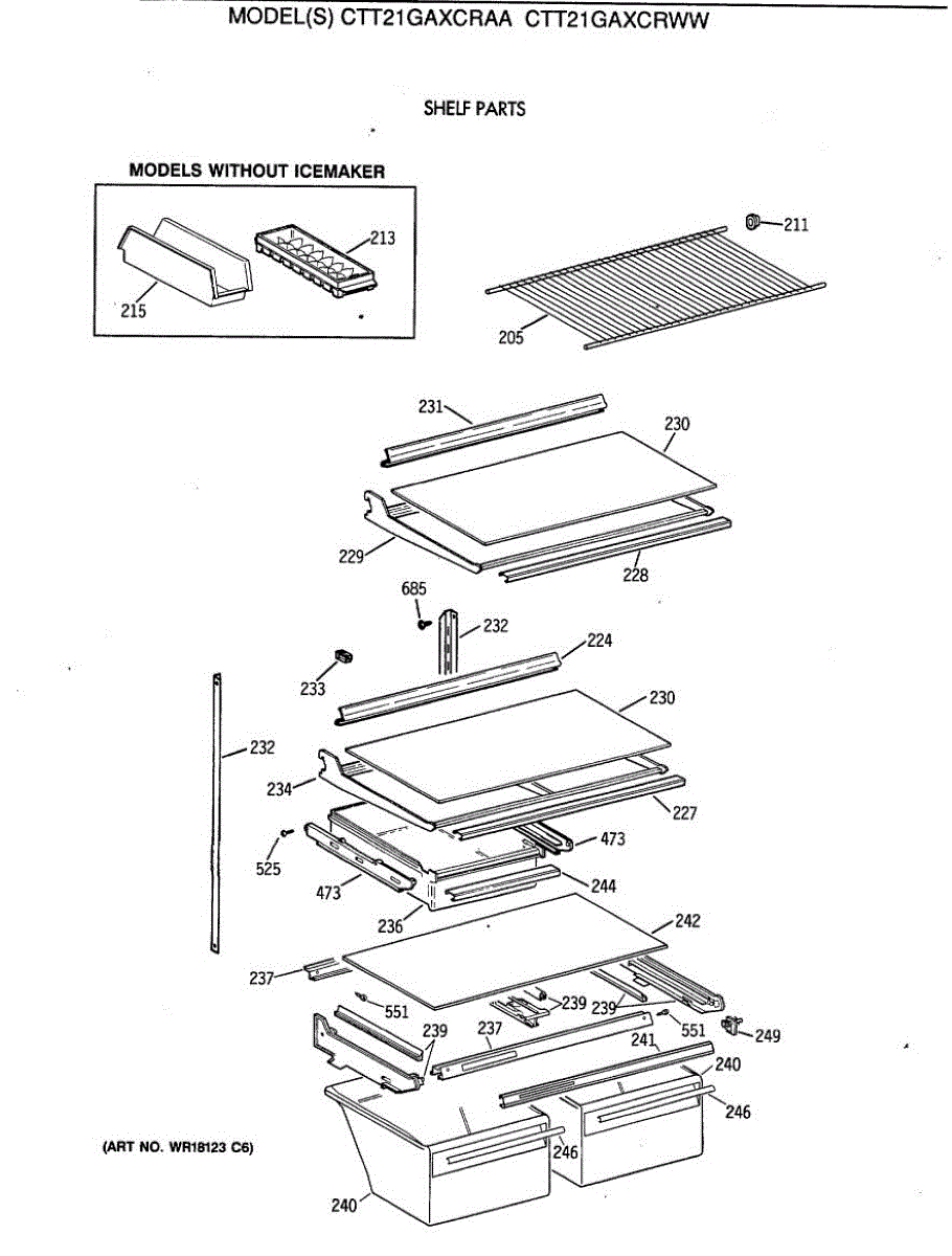 Glass shelf front trim for top-mount refrigerators. Replaces cracked, broken, or missing trim pieces along the front edge of refrigerator shelves.