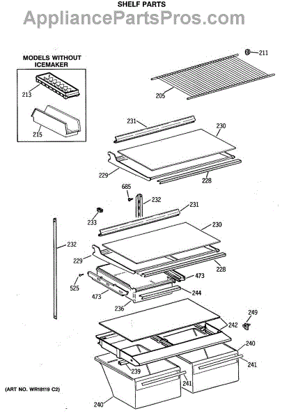 Parts for Ge CTX18GASQRAD: 04 - Shelf Parts