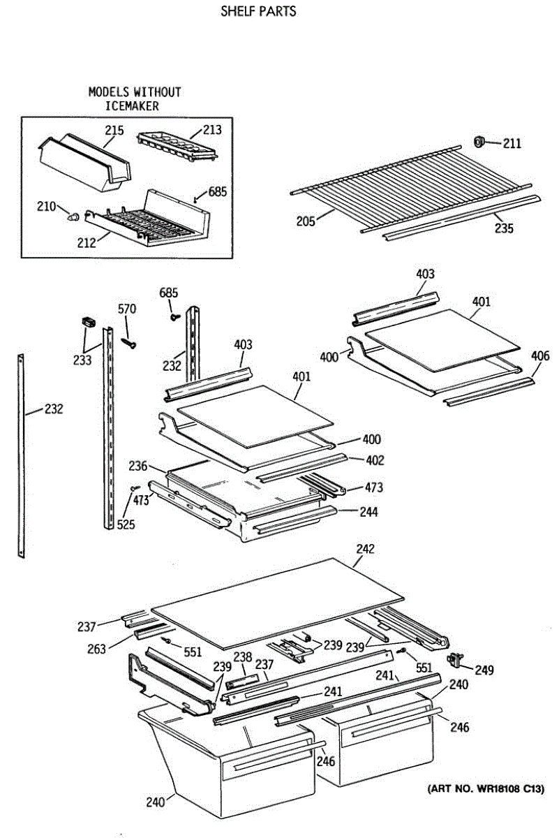Replacement handle for refrigerator vegetable crisper drawer. Installs on the front of the produce pan for easy opening and closing. Needed when original handle is cracked, broken, or missing.