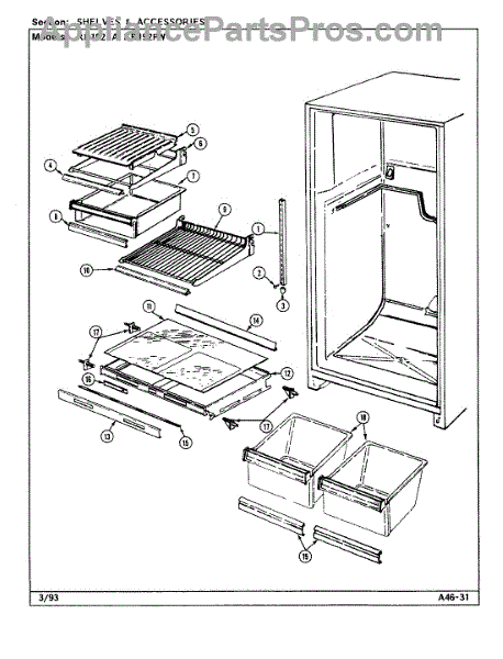 Parts for Magic Chef RB192PW / DE71A: 04 - Shelves & Accessories Parts