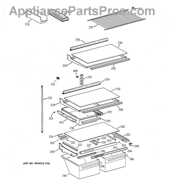 Parts for Ge CTG21GADARWW: 04 - Shelves & Drawers Parts