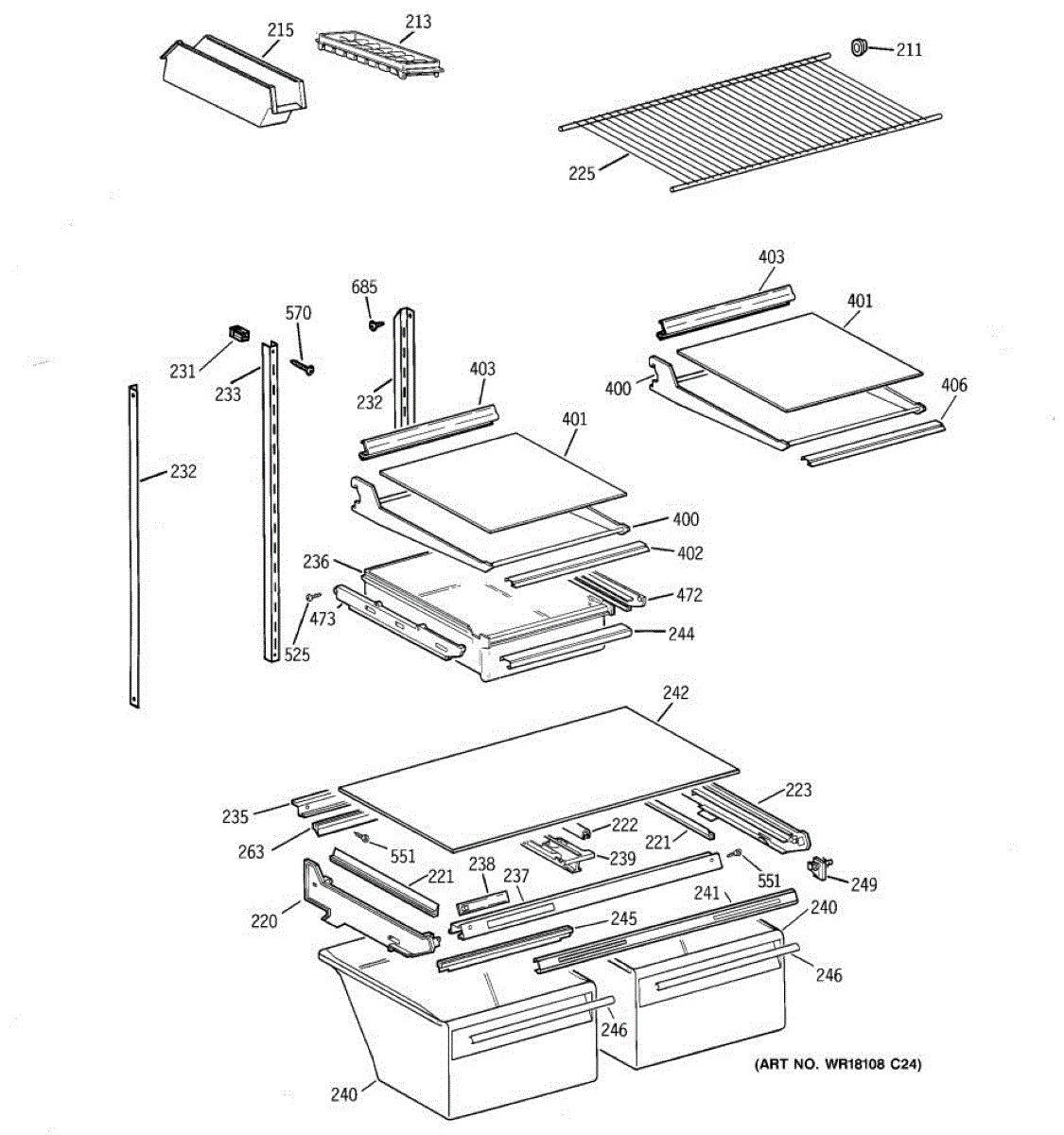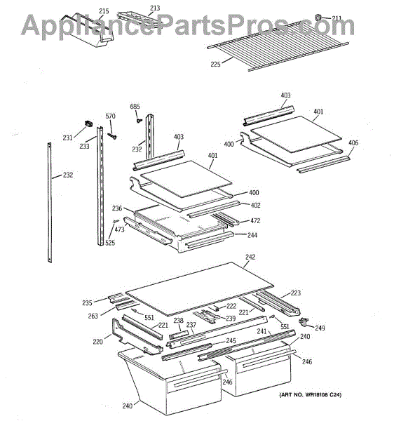 Parts for Ge CTG25GADARWW: 04 - Shelves & Drawers Parts