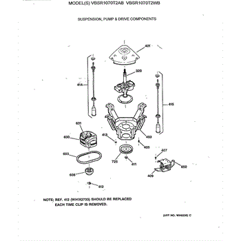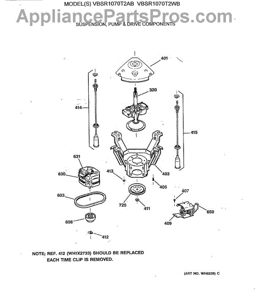 For retaining clip separately use WH1X2733. For washers with removable front panel.