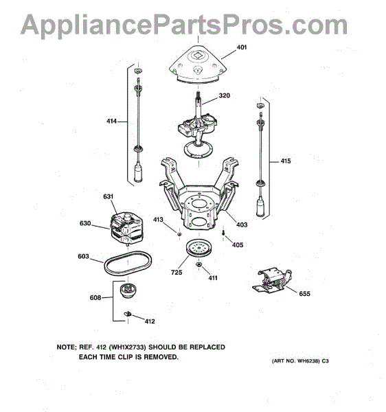 For retaining clip separately use WH1X2733. For washers with removable front panel.