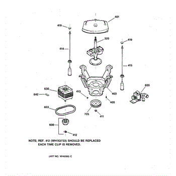 The Suspension Rod & Spring Assembly is an OEM part for GE washing machines. This assembly helps support the washer tub, reducing vibrations and maintaining balance during the wash and spin cycles. It ensures that the washer operates smoothly and minimizes excessive movement.