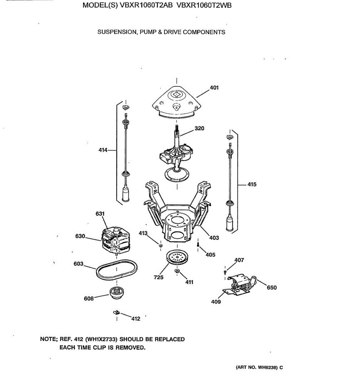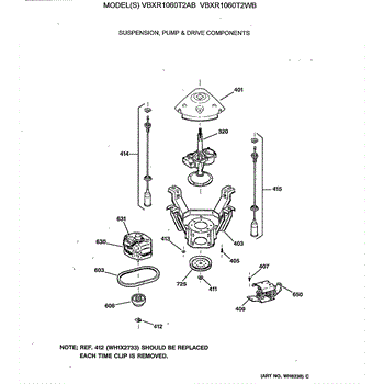 For retaining clip separately use WH1X2733. For washers with removable front panel.