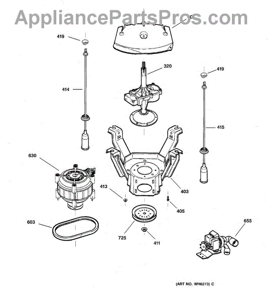 The Suspension Rod & Spring Assembly is an OEM part for GE washing machines. This assembly includes a rod and spring that supports the washer tub, helping to absorb shocks and reduce vibrations during the wash and spin cycles.