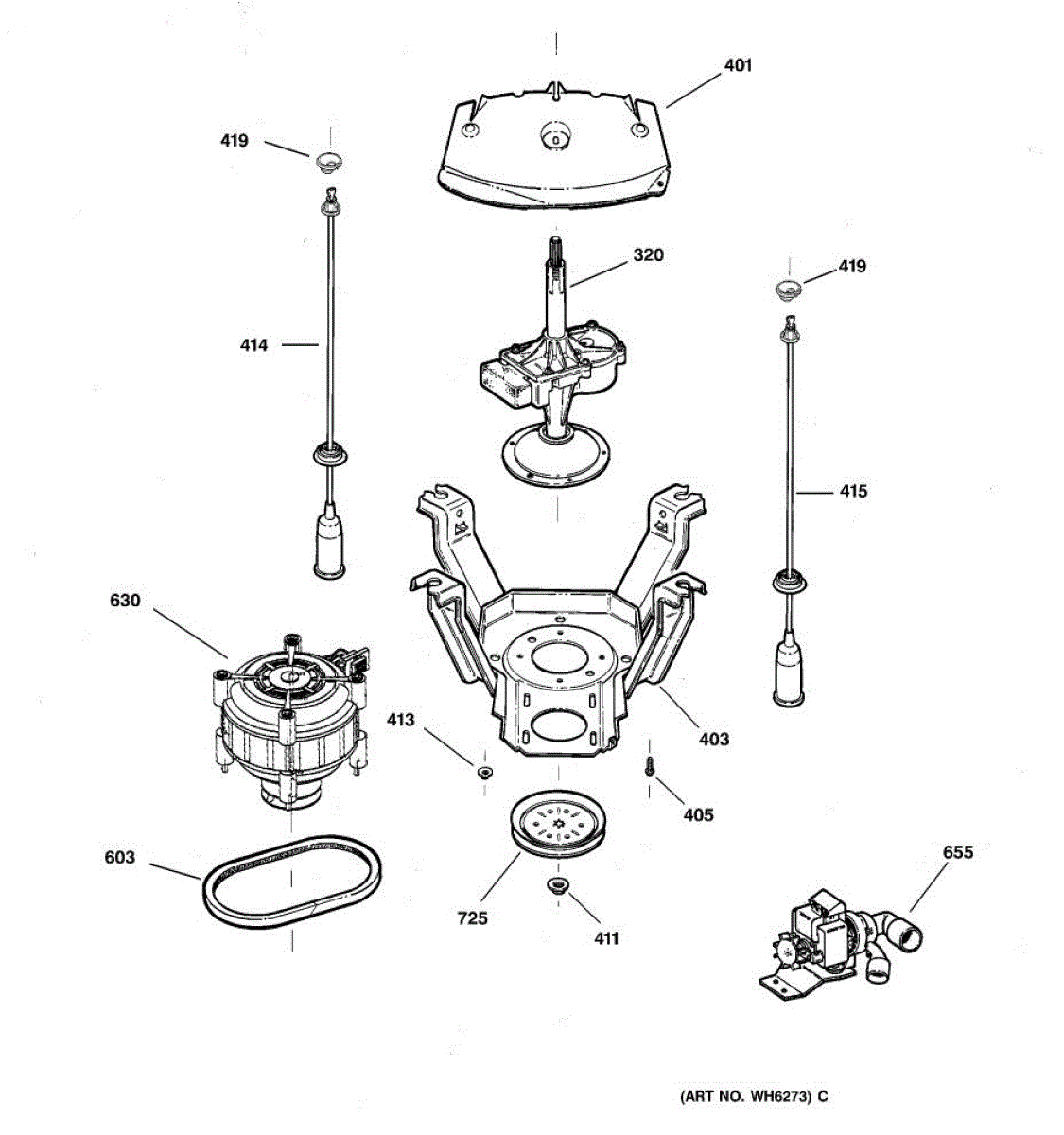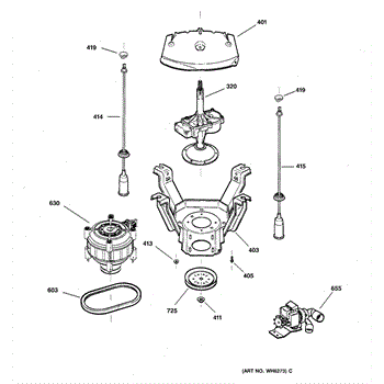 The Suspension Rod & Spring Assembly is an OEM part for GE washing machines. This assembly includes a rod and spring that supports the washer tub, helping to absorb shocks and reduce vibrations during the wash and spin cycles.