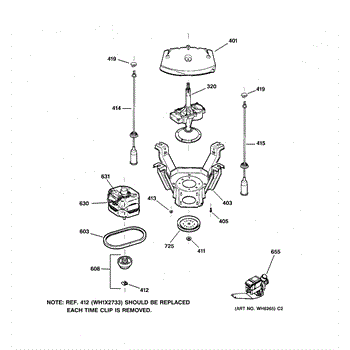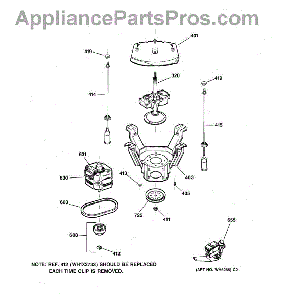 The Suspension Rod & Spring Assembly is an OEM part for GE washing machines. This assembly includes a rod and spring that supports the washer tub, helping to absorb shocks and reduce vibrations during the wash and spin cycles.