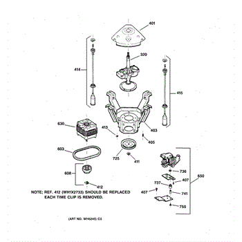 For retaining clip separately use WH1X2733. For washers with removable front panel.