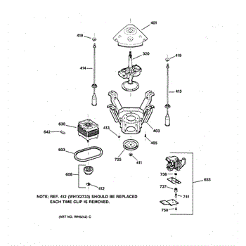 The Suspension Rod & Spring Assembly is an OEM part for GE washing machines. This assembly helps support the washer tub, reducing vibrations and maintaining balance during the wash and spin cycles. It ensures that the washer operates smoothly and minimizes excessive movement.